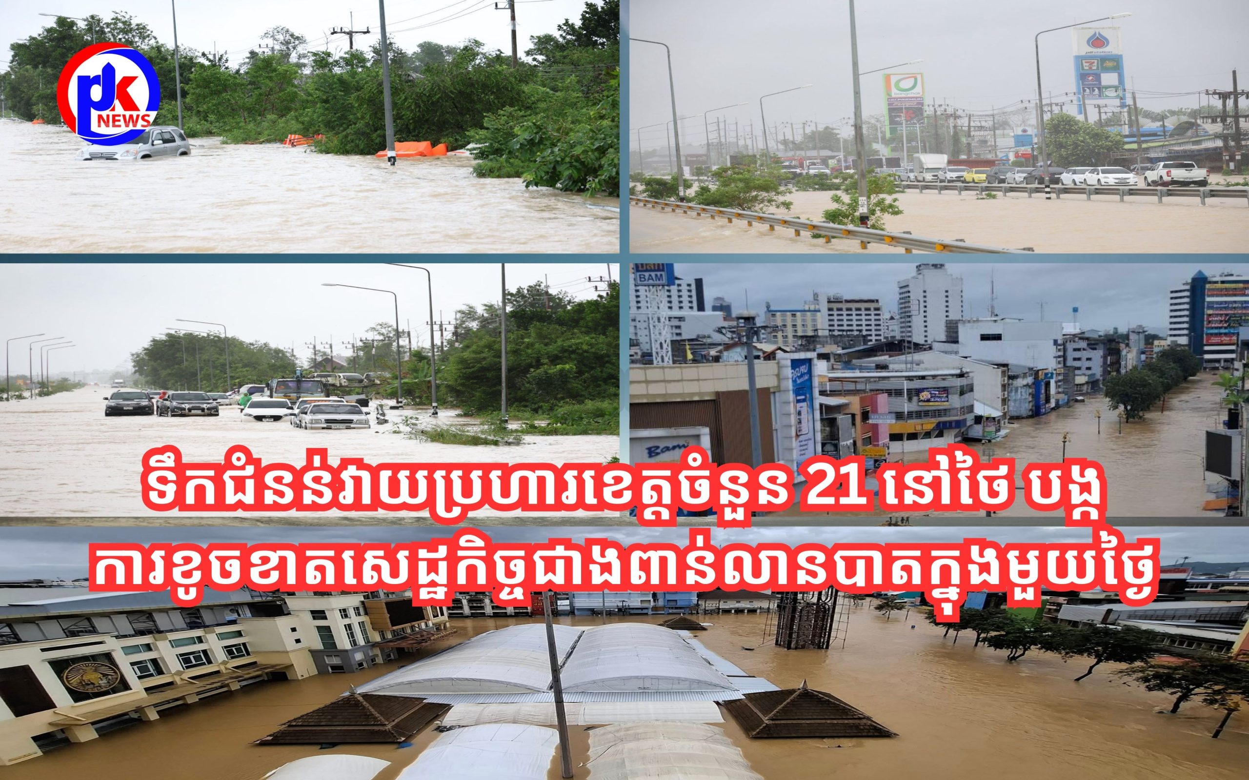 ទឹកជំនន់វាយប្រហារខេត្តចំនួន 21 នៅថៃ បង្កការខូចខាតសេដ្ឋកិច្ចជាងពាន់លានបាតក្នុងមួយថ្ងៃ
